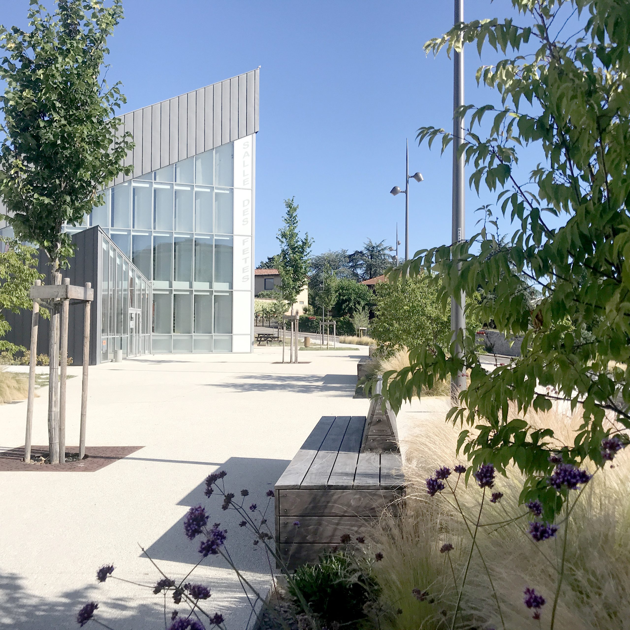 Les enjeux étaient la justesse d’implantation altimétrique de la place, les franges de la place permettant des coutures paysagères, des connections aux équipements et aux voies adjacentes et enfin l’identification des différents espaces en fonction des usages dans un continuum d’espaces accessibles aux poussettes et aux fauteuils.