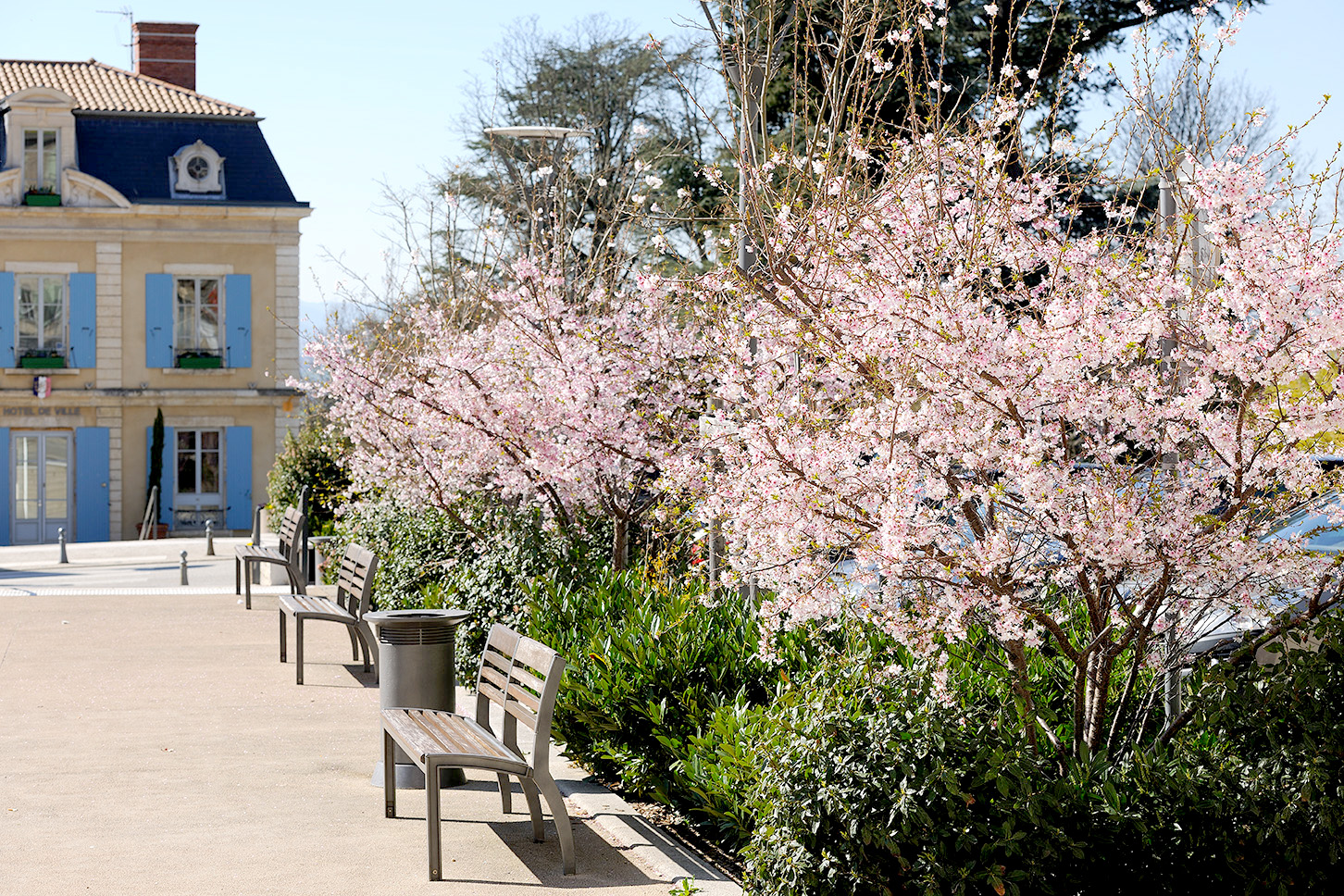Le réaménagement de la Place Décurel vise à créer un large parvis piéton afin de révéler et mettre en valeur l’église depuis la rue principale. Un espace ouvert est ainsi dessiné, offrant une respiration dans le « village-rue » escarpé de Limonest. En balcon sur la Mairie et le grand paysage l’espace central est libre, ses franges sont paysagères recréant une composition axiale. Un espace de stationnement prend place sur le côté de la place. Des terrasses aménagées pour le café-restaurant animent les franges de la place aux beaux jours.